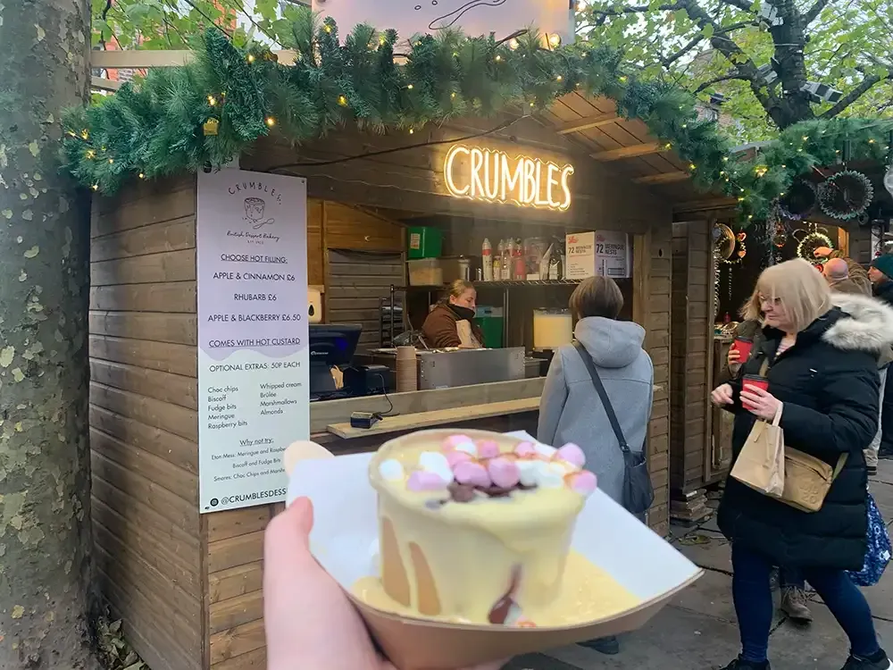 Whether you’re grabbing a treat to enjoy as you wander or sitting at one of the outdoor tables, the market is full of cosy, comforting winter food.
